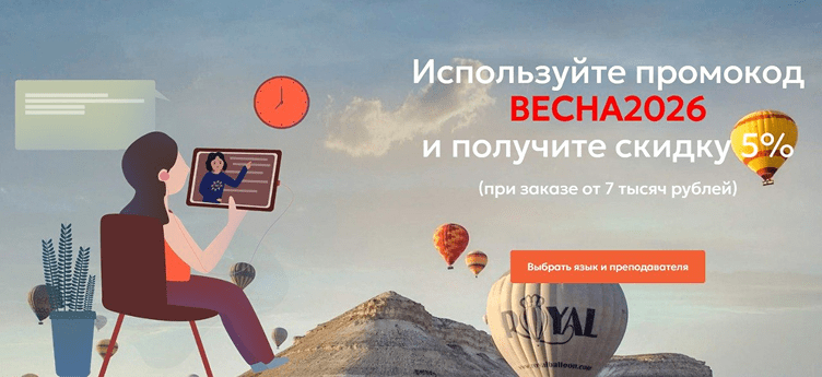 - каждую неделю — практика по 60 минут с носителем языка в специальном онлайн-классе;